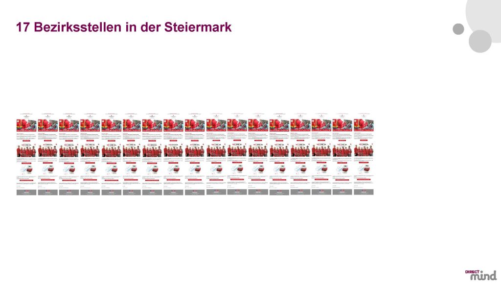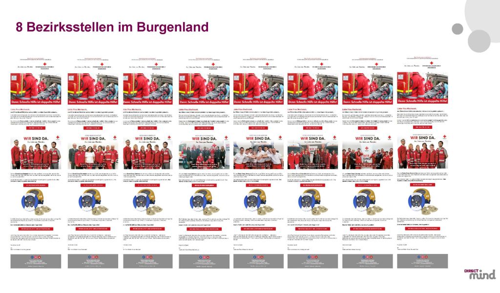 Was heißt das jetzt genau? Ganz klar: „Ein E-Mail für alle“ geht nicht. Es braucht ein elektrisierendes, personalisiertes E-Mail. Eines, das anders ist. Eines, das nah an den Menschen ist. Eines, das auf einen Blick die folgende Botschaft kommuniziert: „Wir sind in deiner Nähe, wir sind da um auch dir zu helfen.“ Das funktioniert! Und zwar mit Hyperpersonalisierung. Indem wir das Bild der Bezirksstellen-Mitarbeiter*innen mutieren. 73-fach.